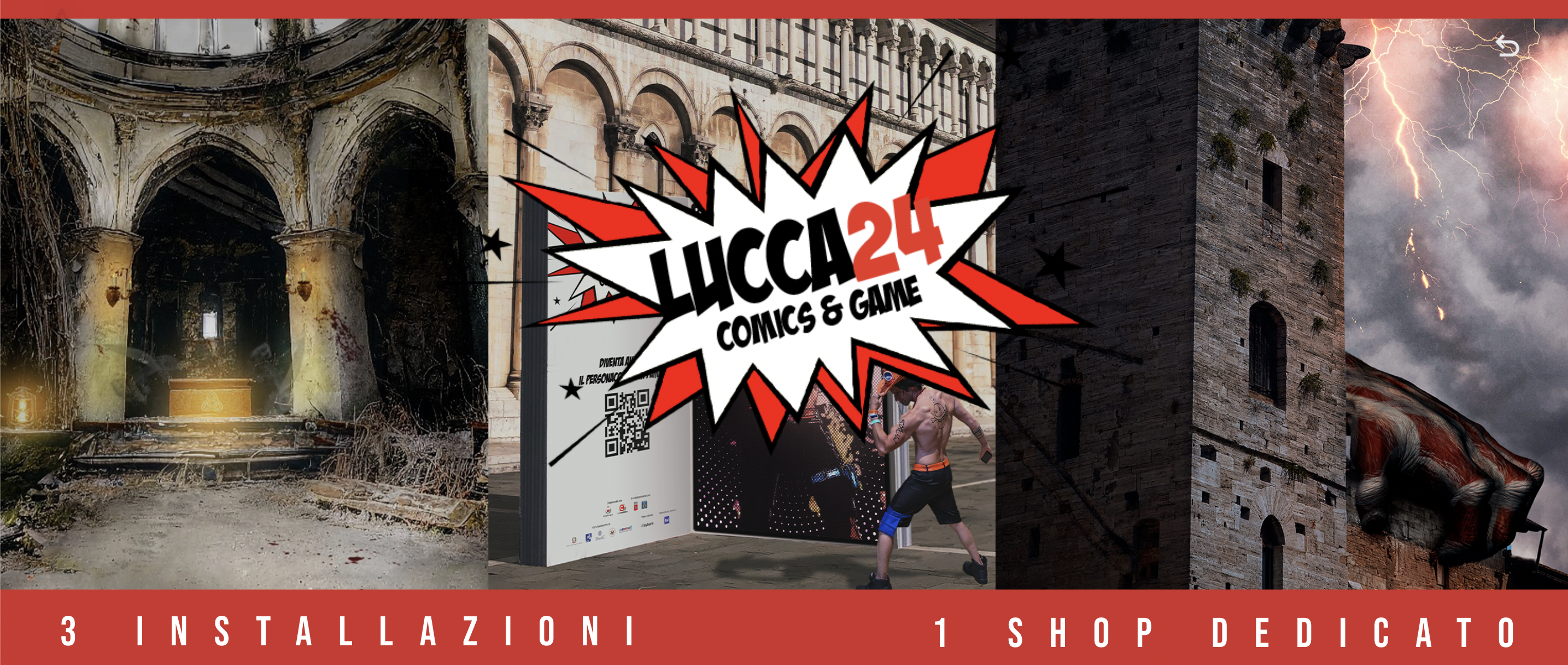 Benvenuti nel cuore della battaglia contro i giganti! Abbiamo ideato 4 installazioni volte a coinvolgere i fan di Attack on Titan in un’esperienza senza precedenti, portando alla vita l’affascinante mondo di Hajime Isayama. Le 4 installazioni saranno collocate all’interno delle mura di Lucca, la città sarà letteralmente invasa da giganti .